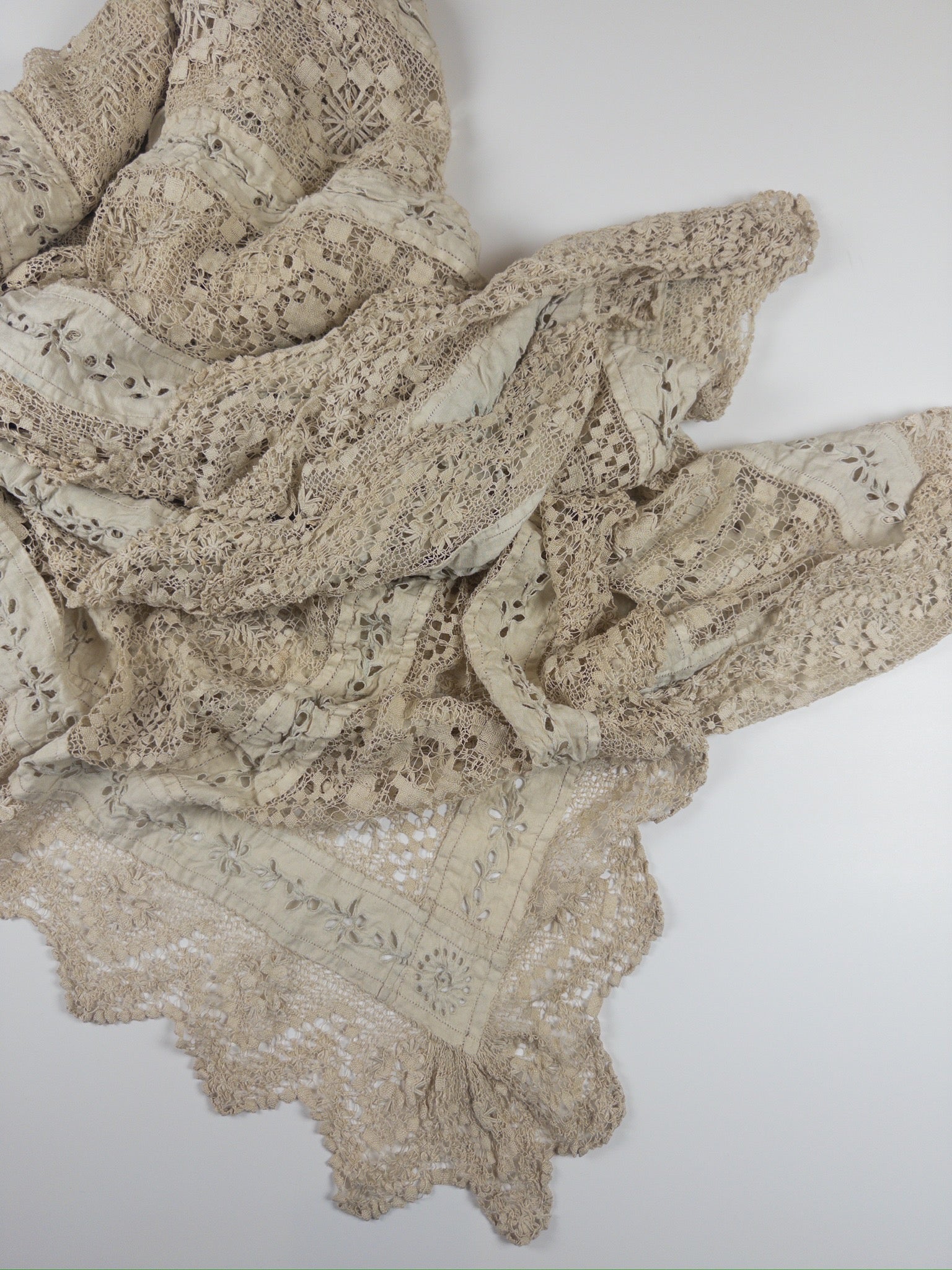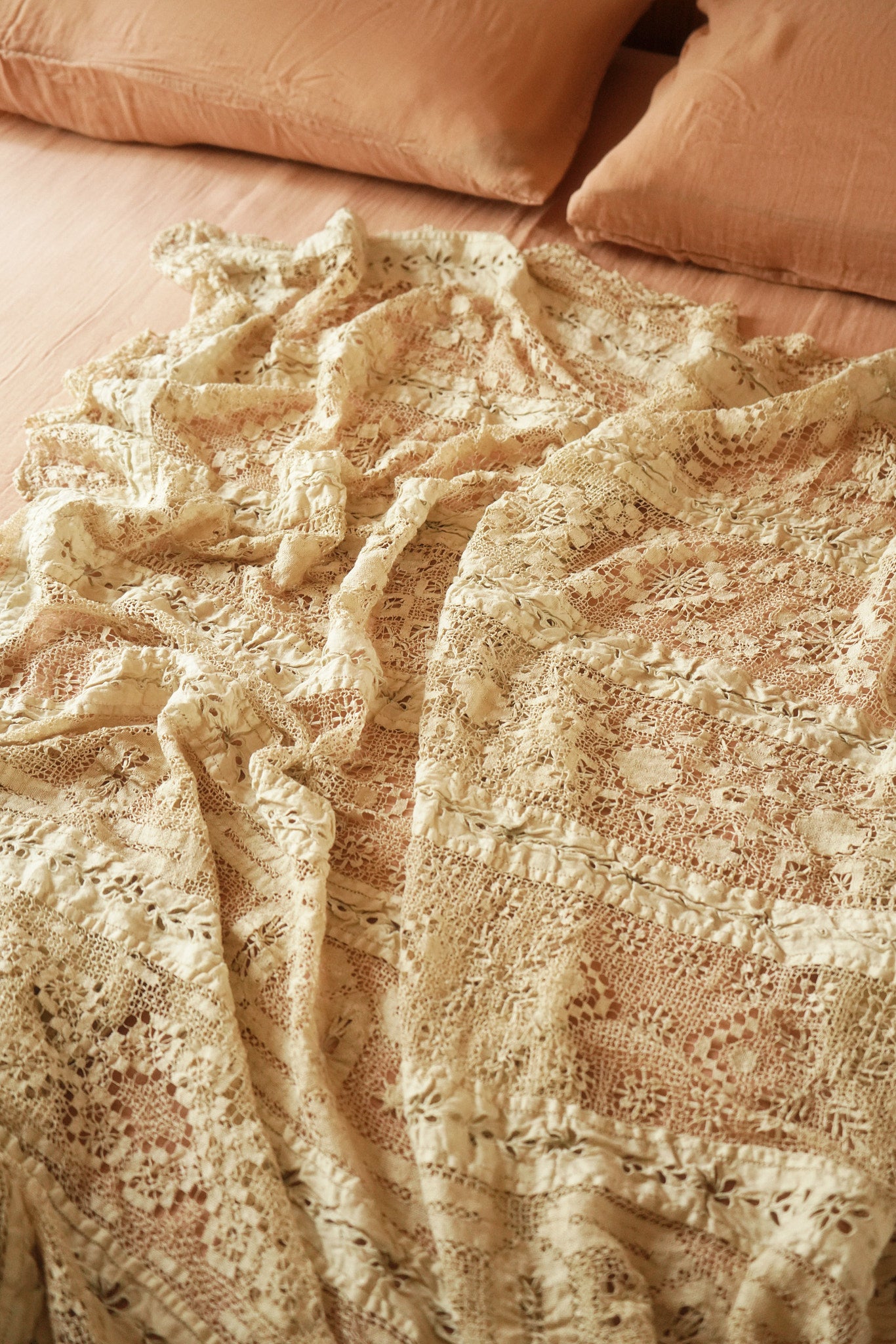 The crochet bedspread is a unique vintage piece from the 1920s, handmade with very fine thread. Hundreds of hours of work are required to achieve this extremely fine and precise result.