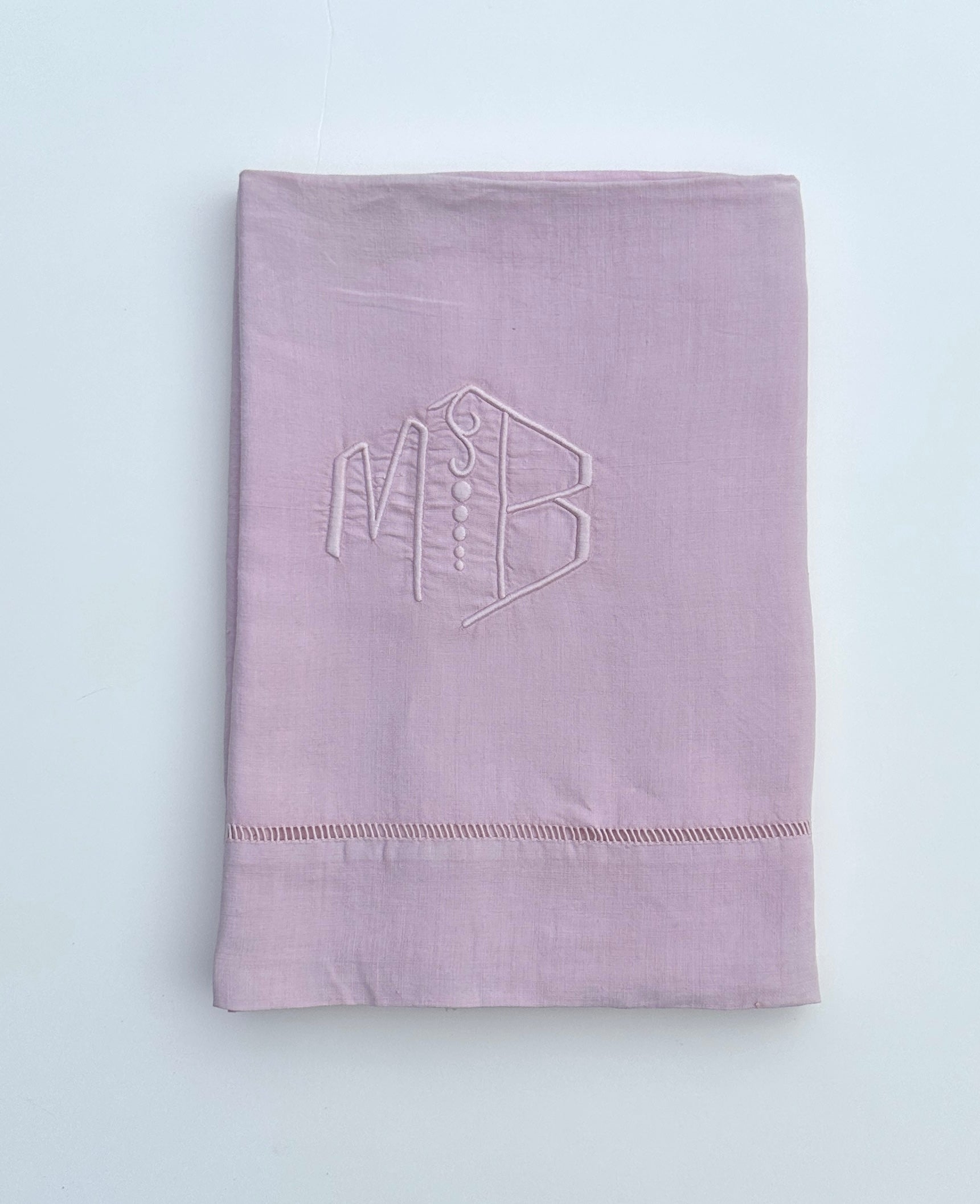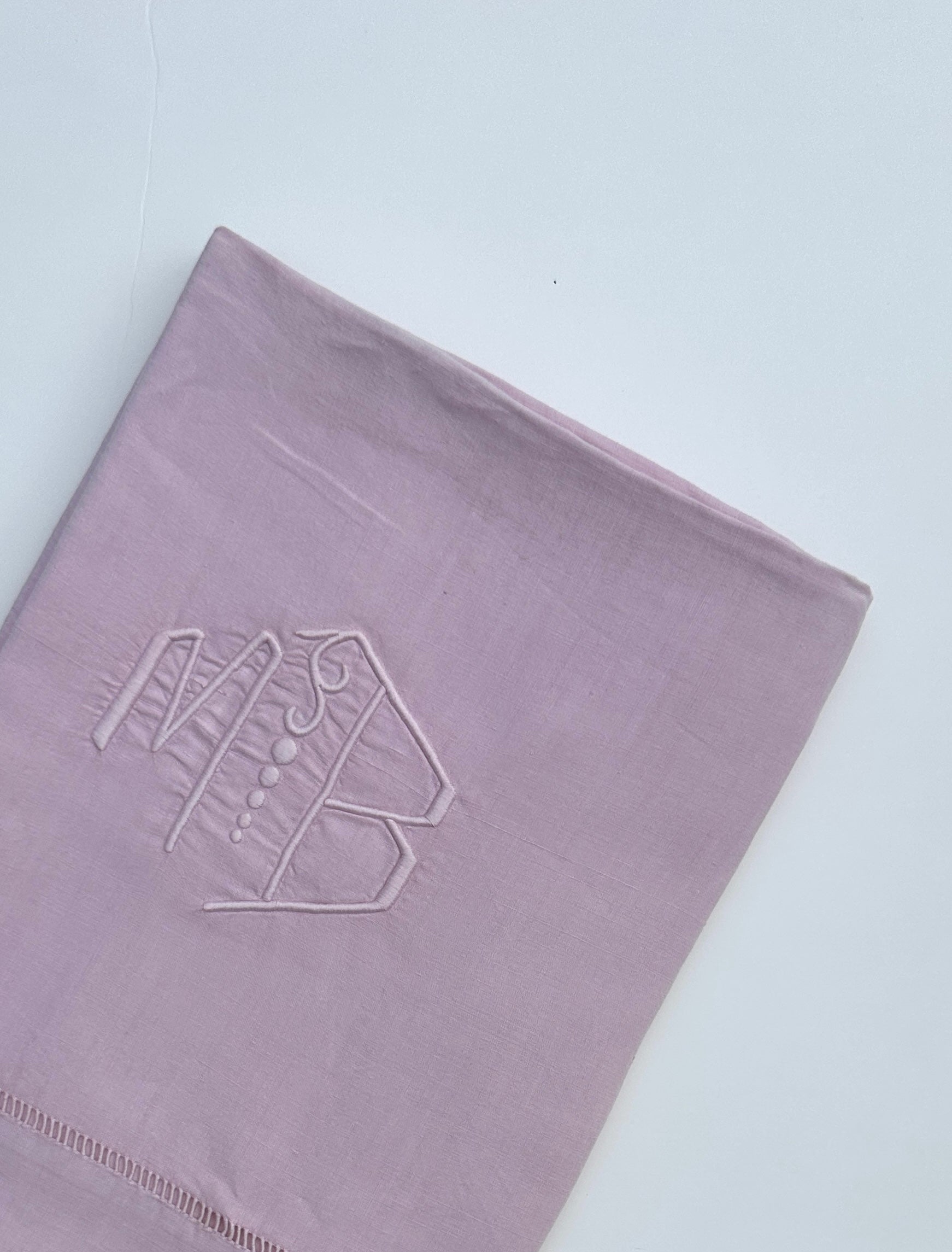 Antique linen sheet - monogrammed MB - 170x300cm - lilac