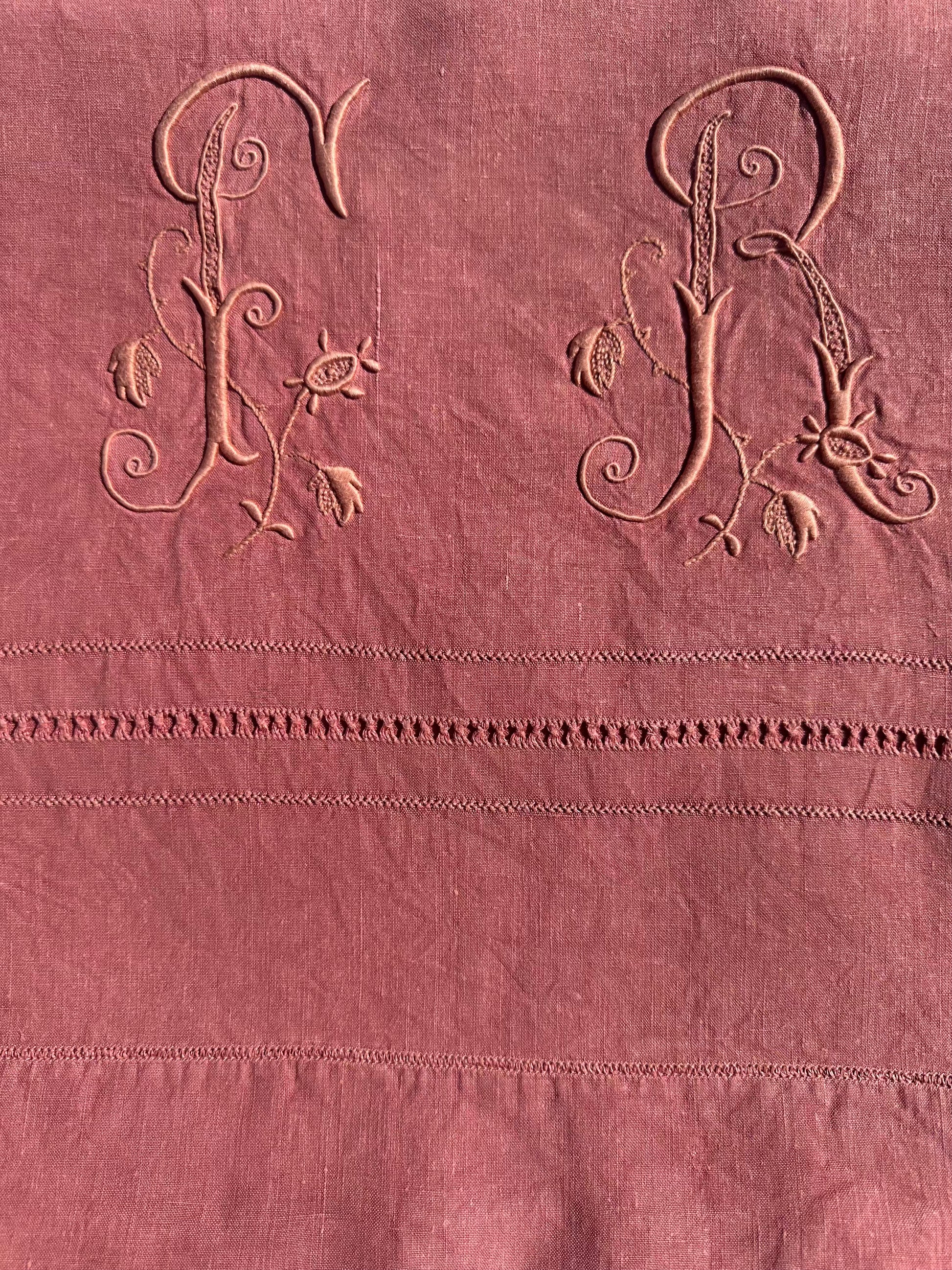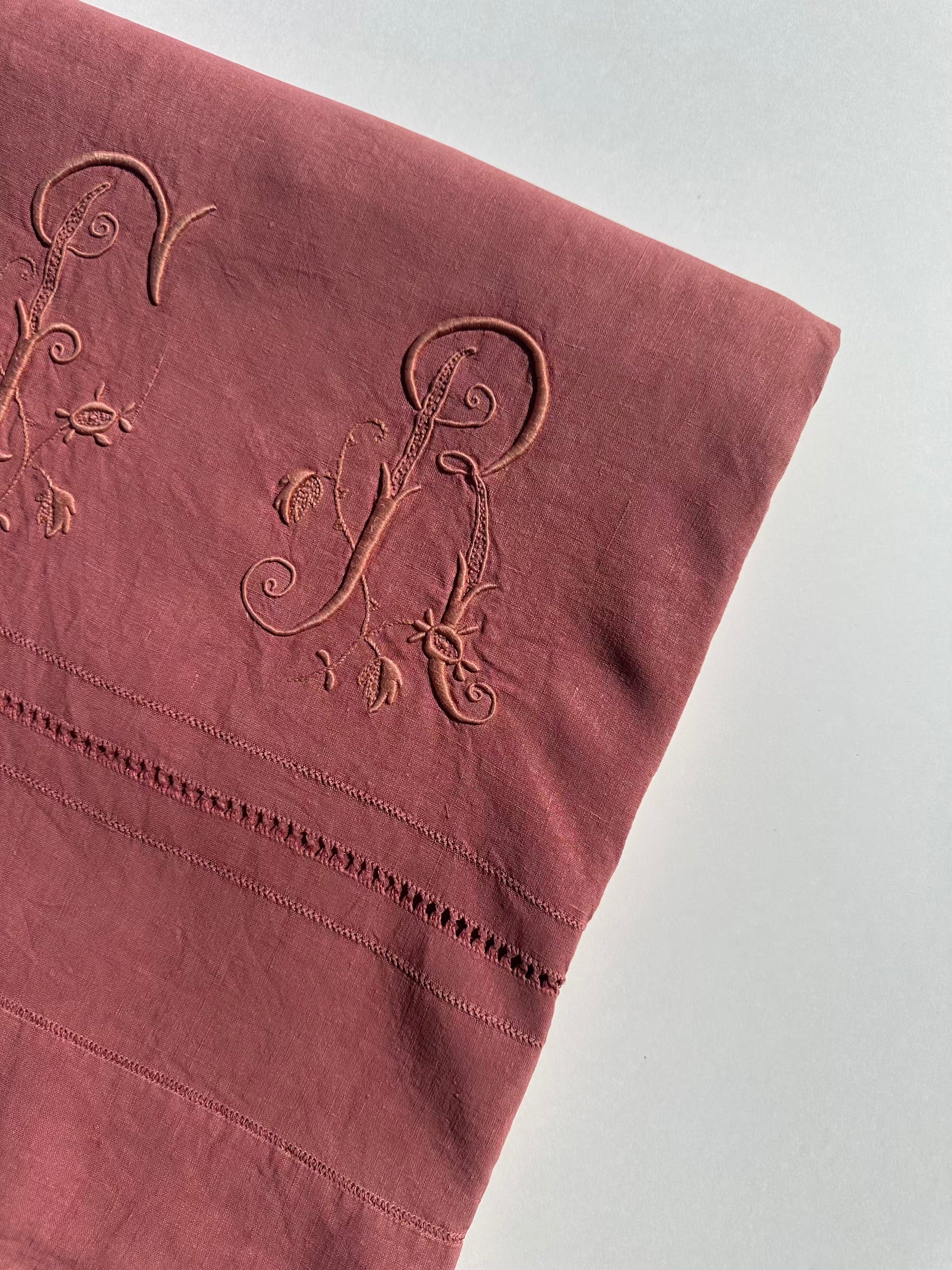 Antique sheet in Metis - monogram FR - 220x300cm - Tomette