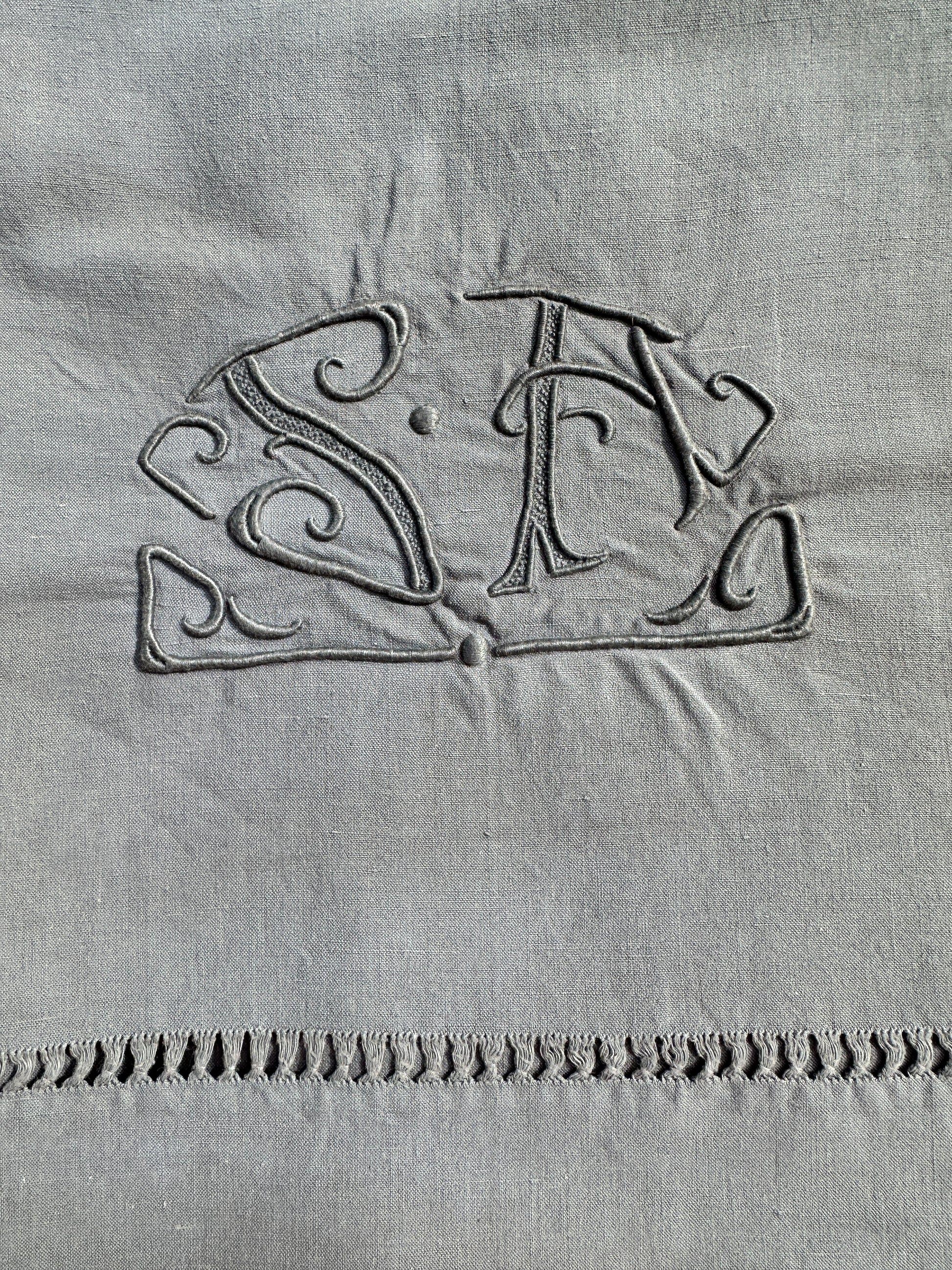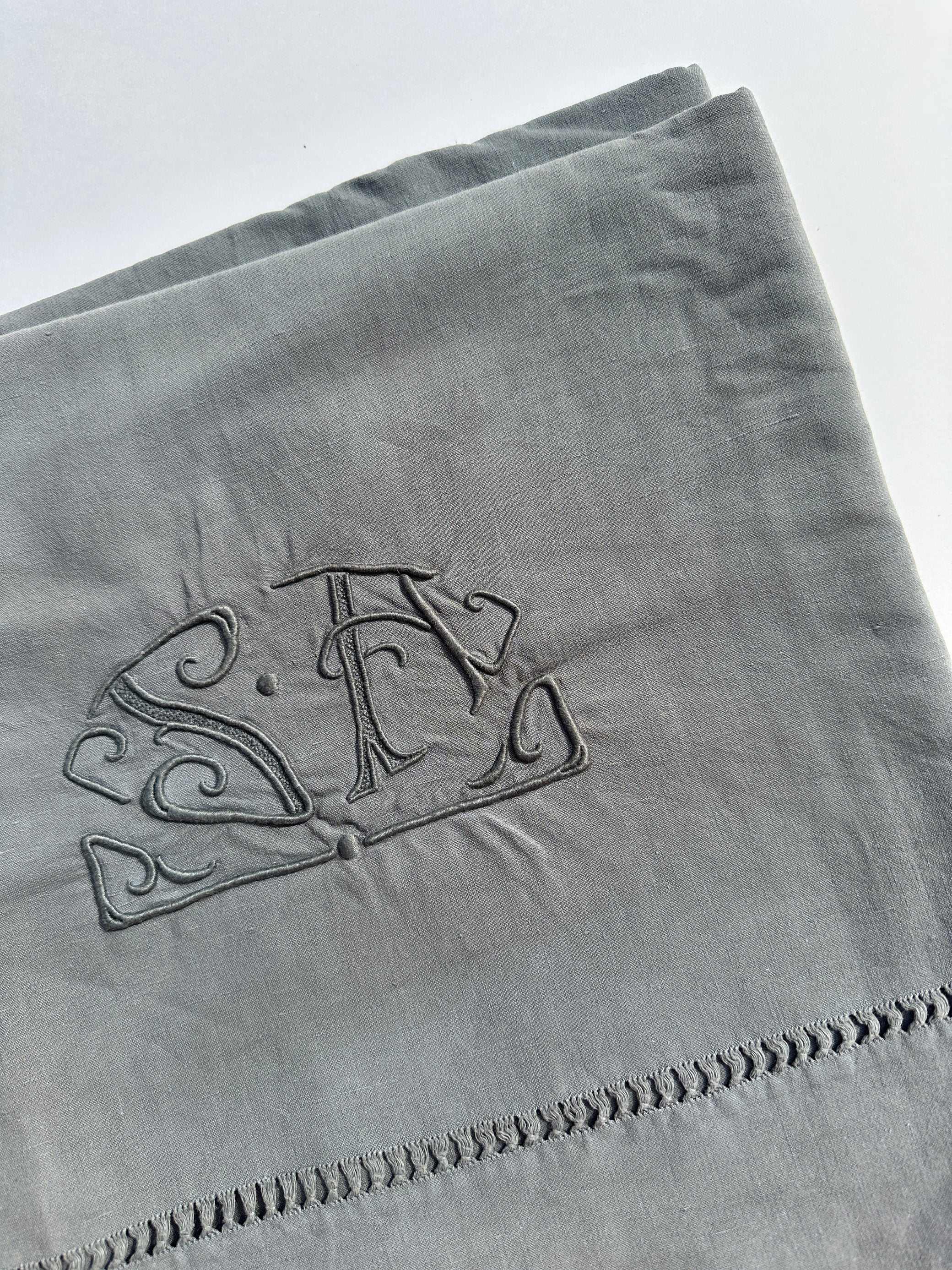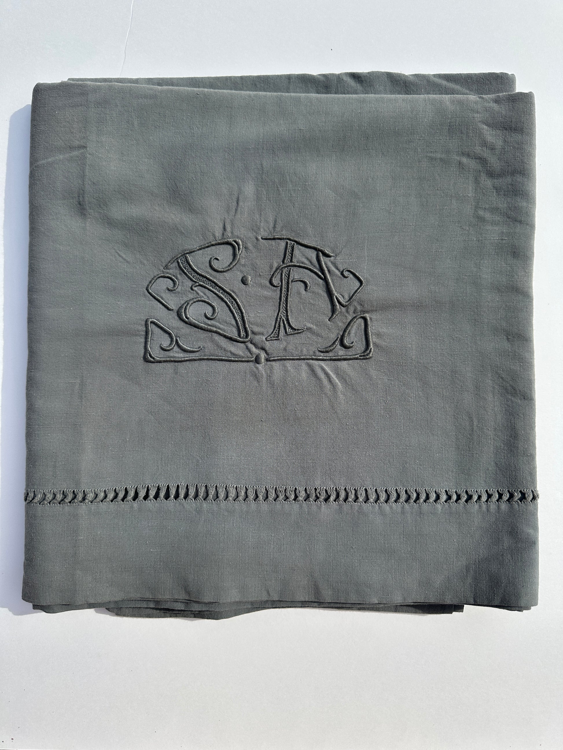 Antique Metis sheet - SA monogram - 180x300cm - Carbon