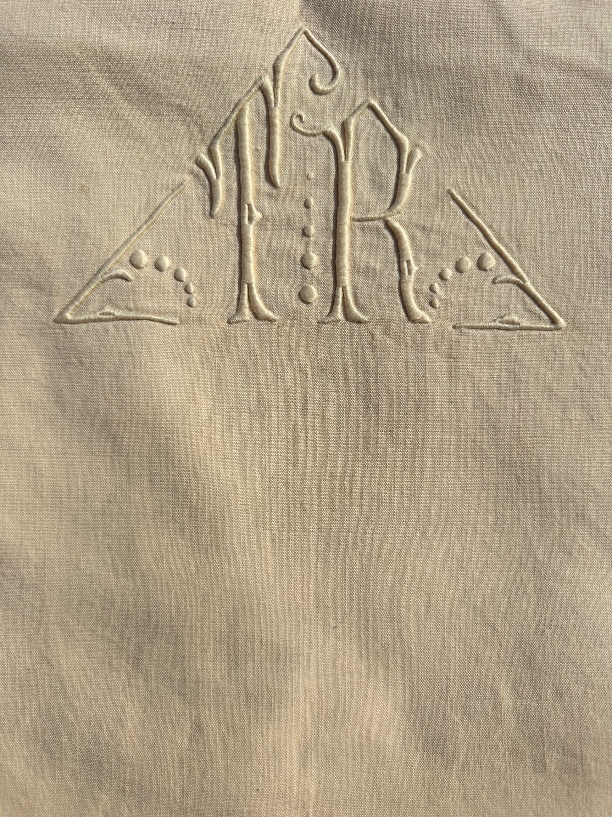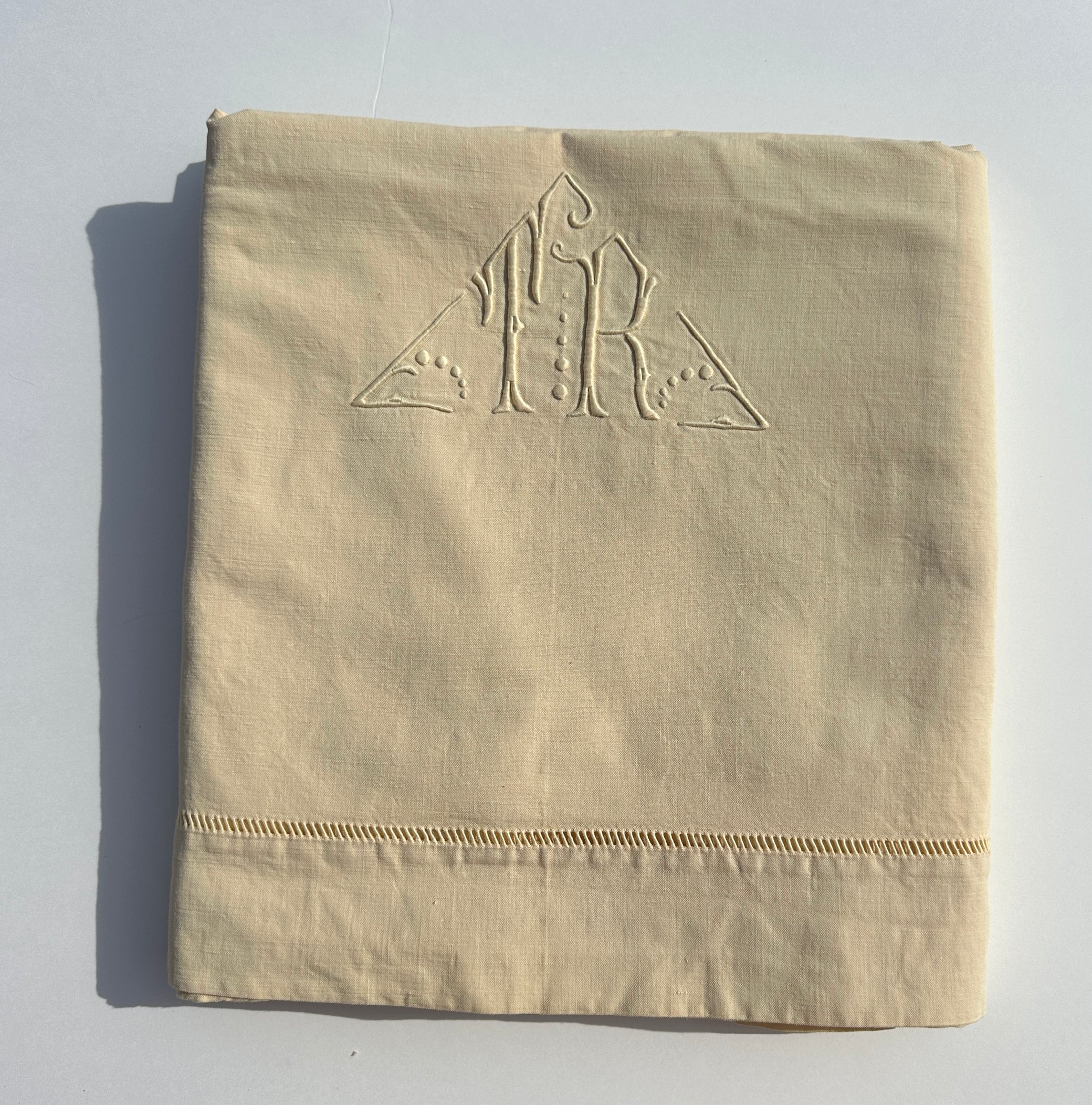 This antique Métis sheet is adorned with a "TR" monogram, testimony to refined craftsmanship. With its 203x310 cm dimensions, it's ideal for dressing up a bed or adding a touch of vintage charm to a sofa.