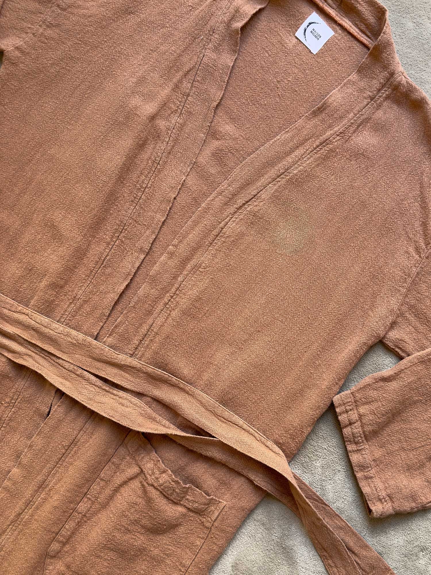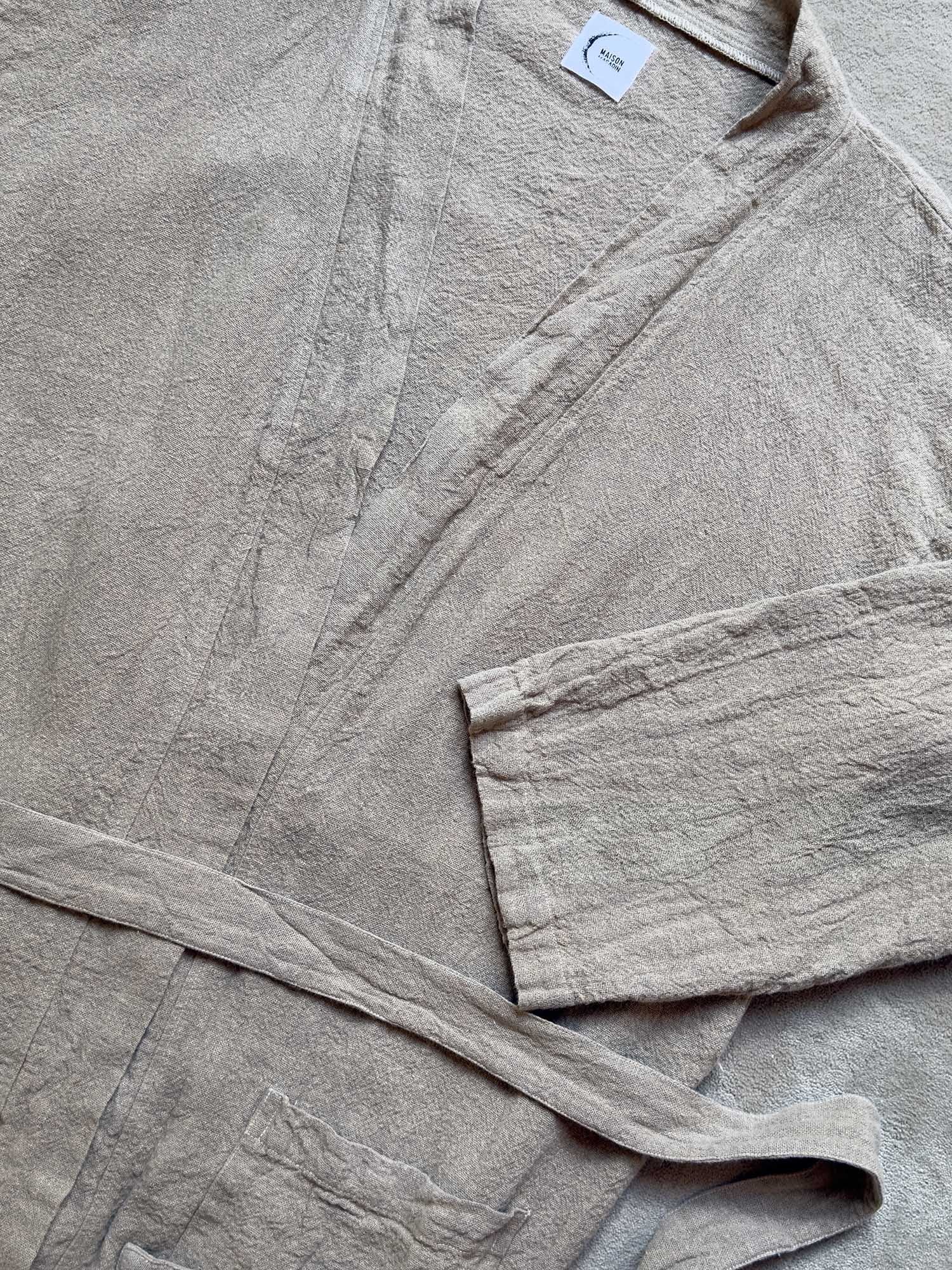 Made from raw linen, this kimono is perfect for stepping out of the bath or lounging at home.
