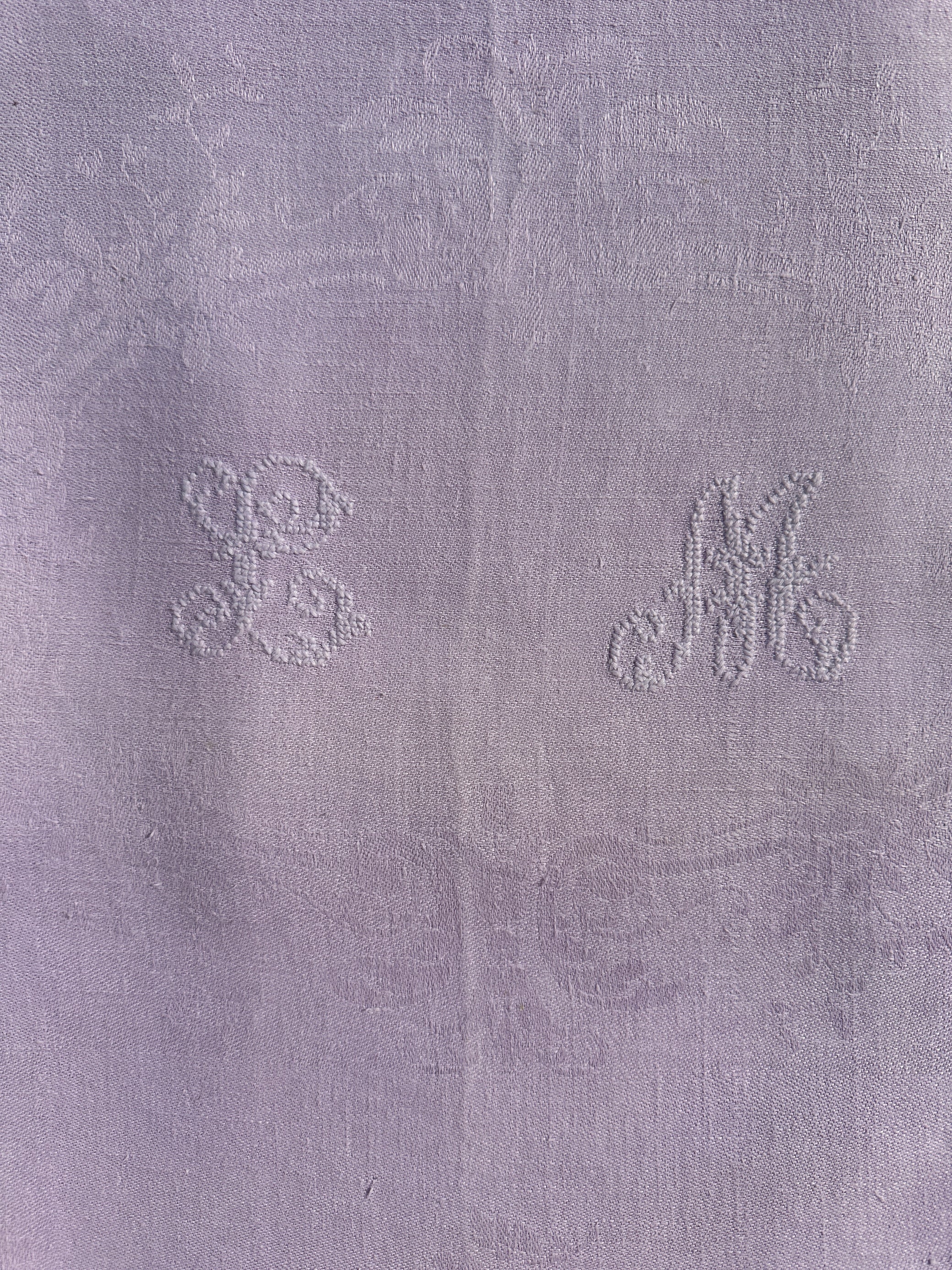 Antique damask tablecloth - Monogram LM - 150x220 cm - Lilac