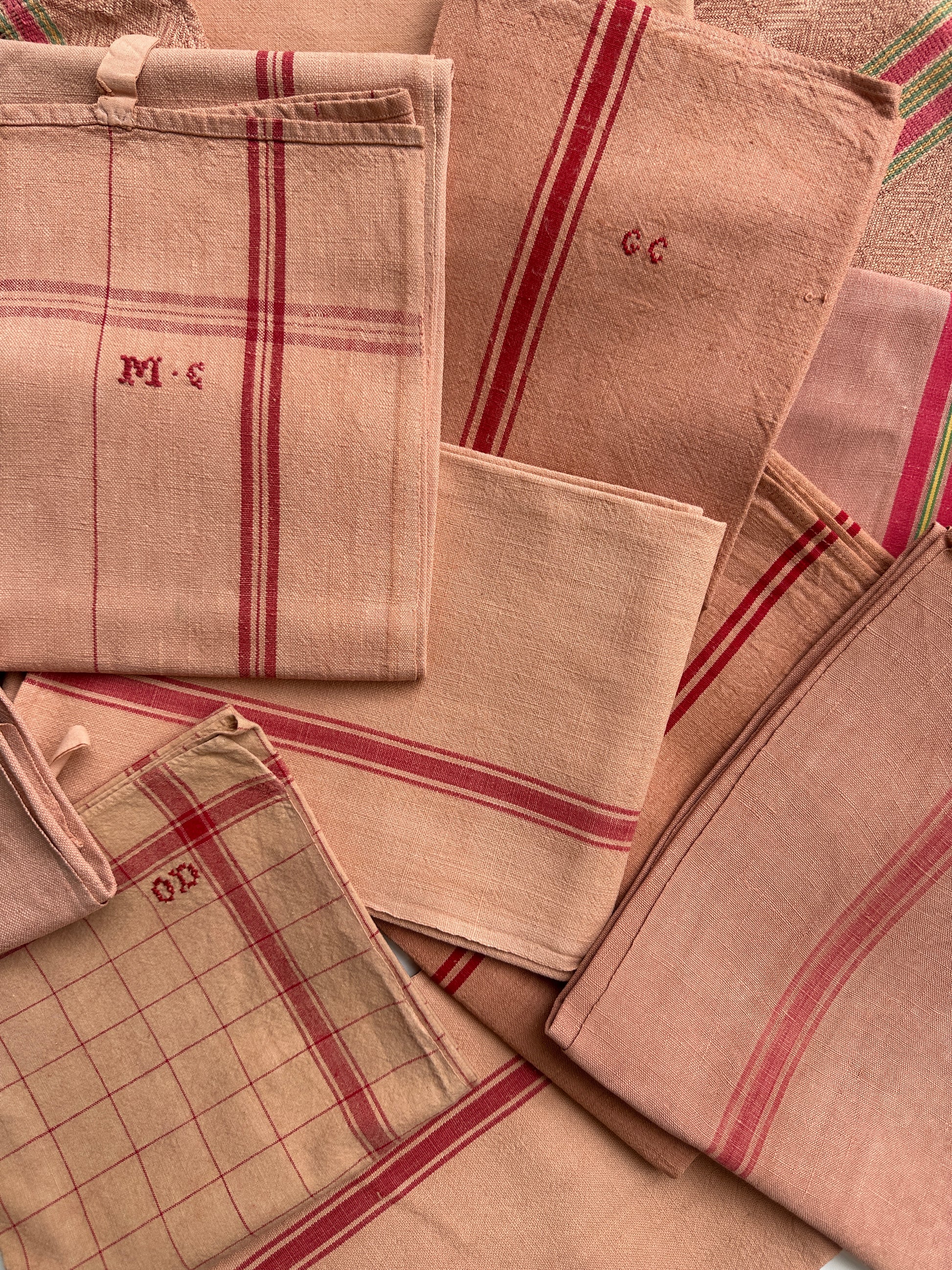 Discover our authentic vintage tea towels, made from linen, hemp, or a subtle blend of these two natural fibers.