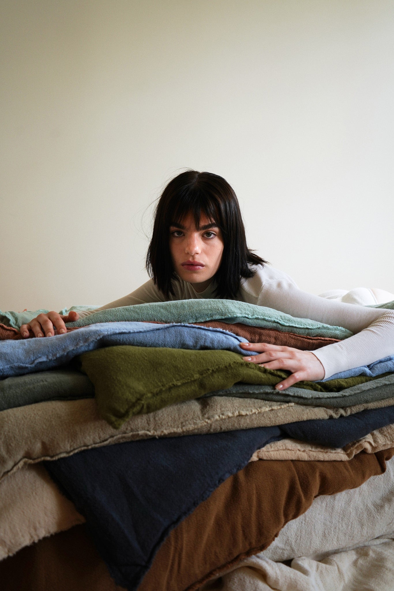 French linen sofa cover with a naturally waffled appearance, untreated, with a soft and a fluffy feel.