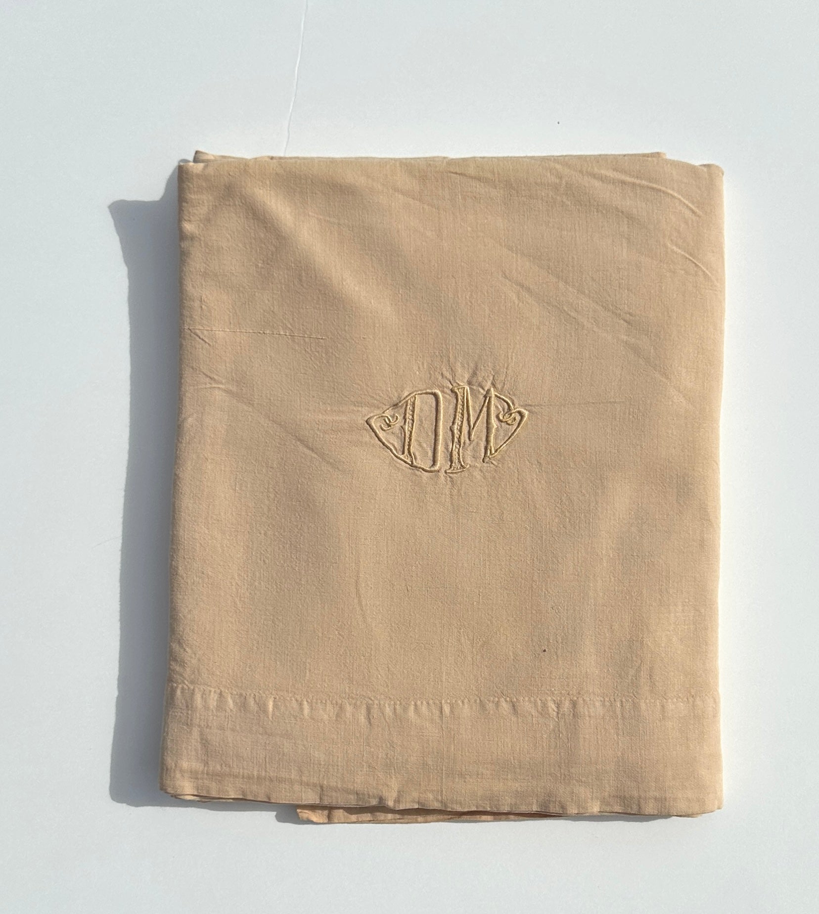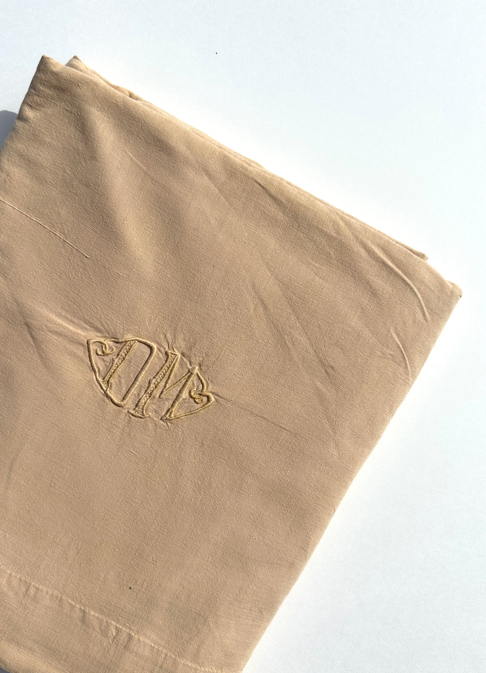 Drap ancien en Metis - monogramme DM - 200x250cm - Beige
