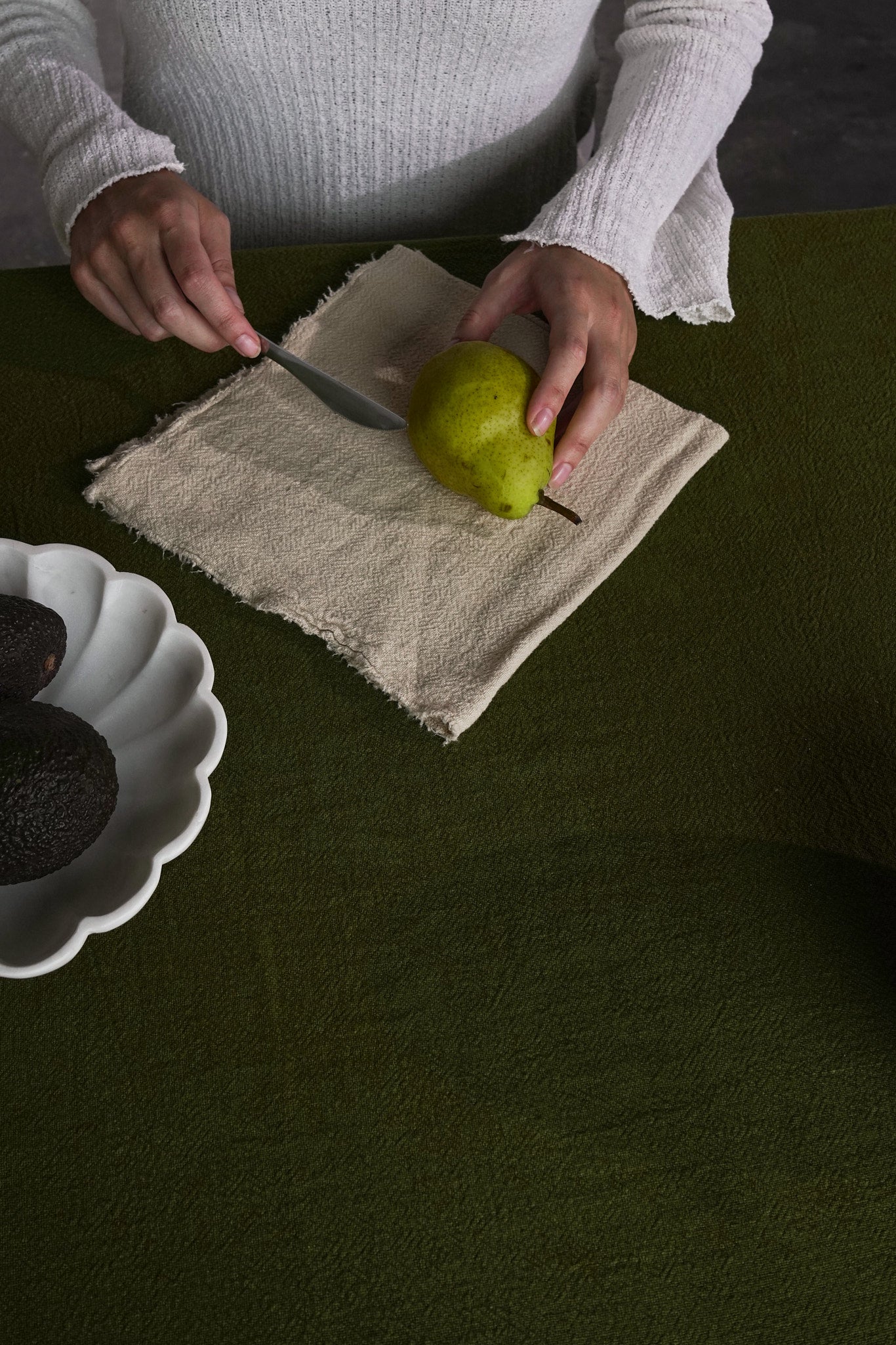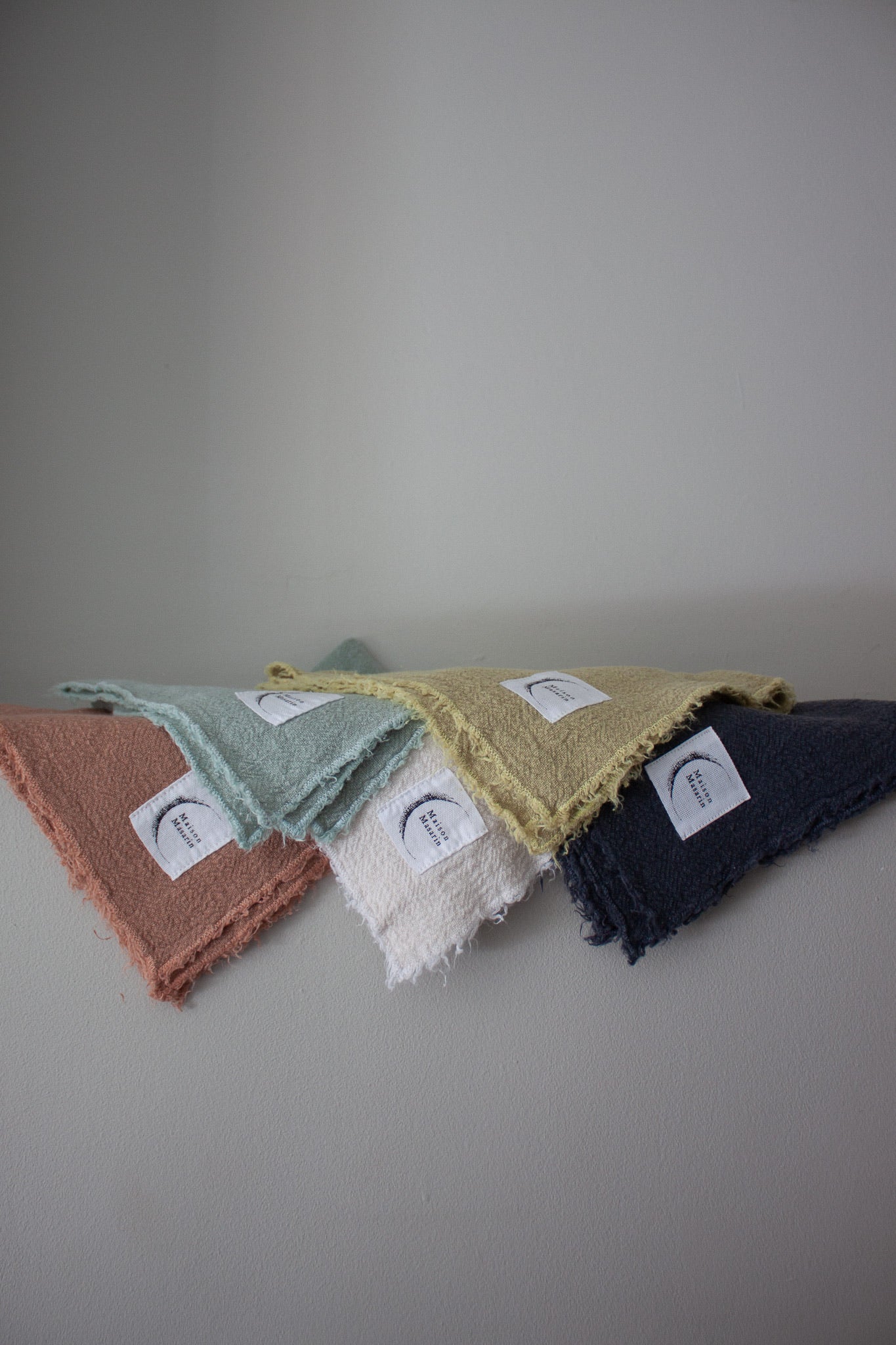 Serviettes en lin français avec un aspect naturellement gaufré, non-traité, au toucher doux et moelleux.