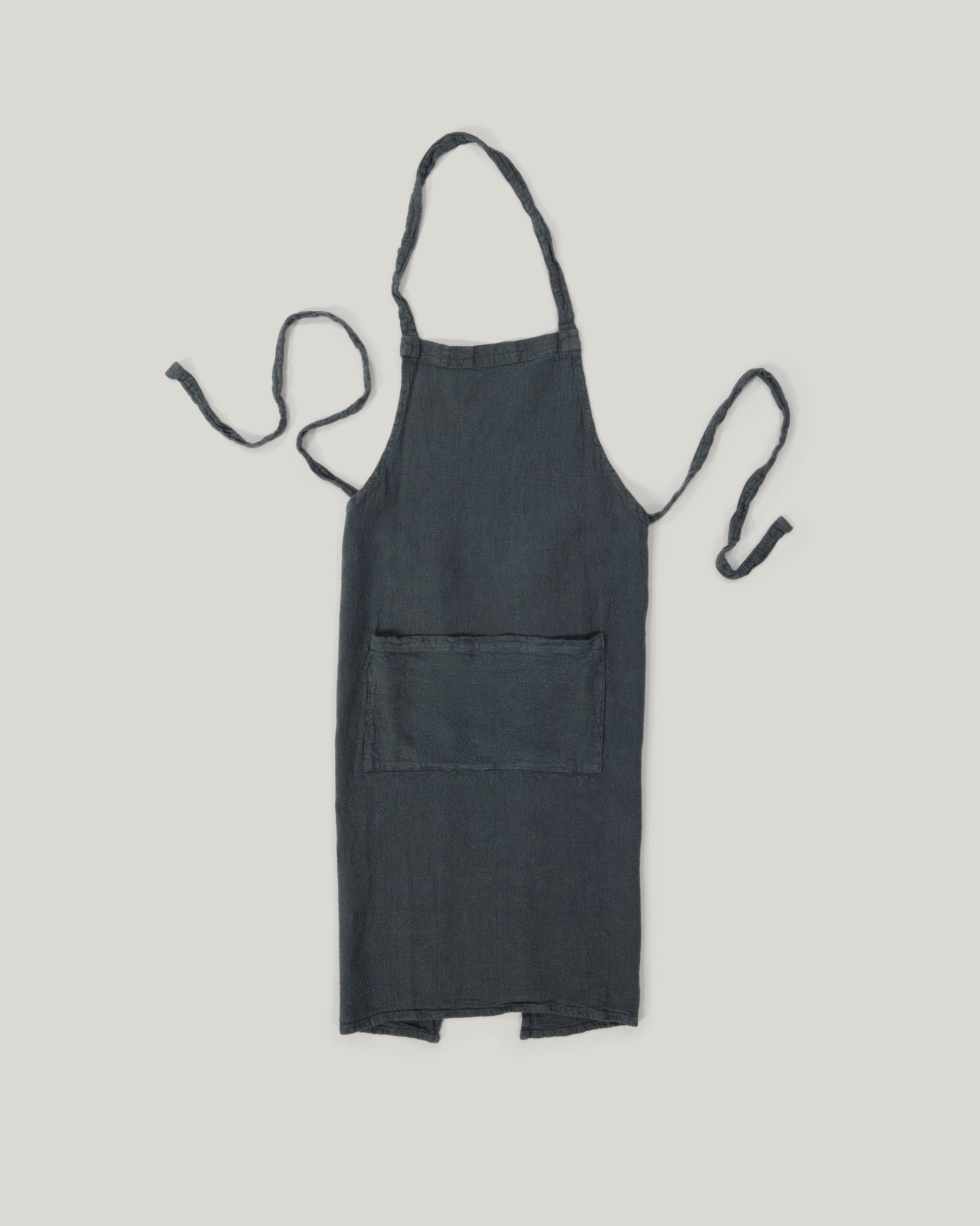 Le tablier classique en lin brut est constitué de lin français naturellement gaufré. Sa texture obtenue par simple lavage lui confère à la fois une douceur et une rugosité, propre à cette fibre. Ses bords sont légèrement frangés pour apprecier l'aspect naturel de cette matière.