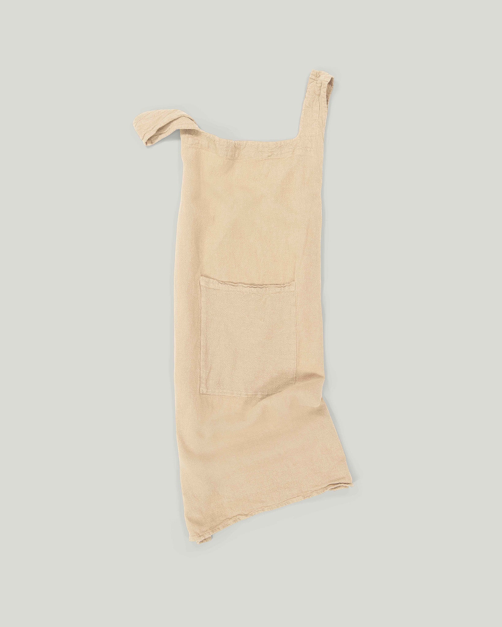 Le tablier japonais en lin brut est constitué de lin français naturellement gaufré. Sa texture obtenue par simple lavage lui confère à la fois une douceur et une rugosité, propre à cette fibre. Ses bords sont légèrement frangés pour apprecier l'aspect naturel de cette matière.