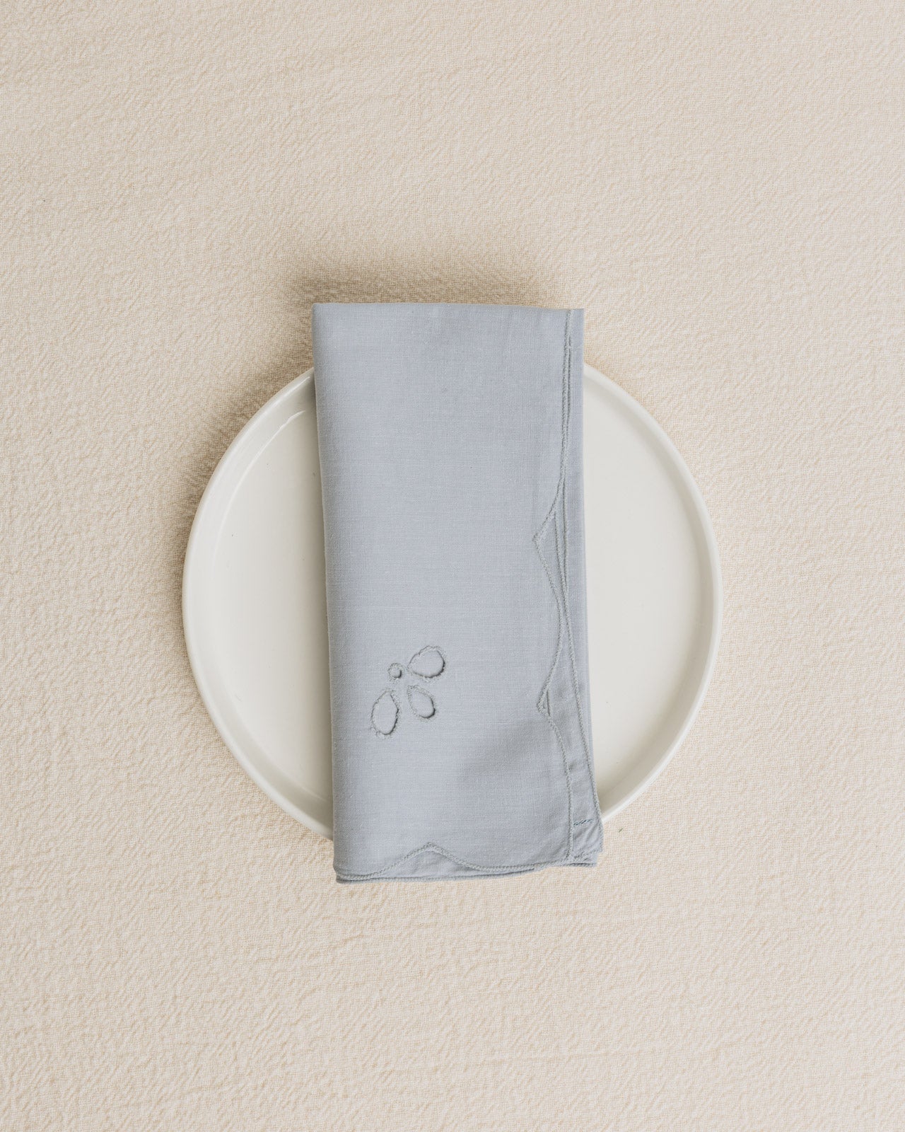 Lot de douze serviettes en lin ancien, issues du linge de trousseau français et teintes à la main.