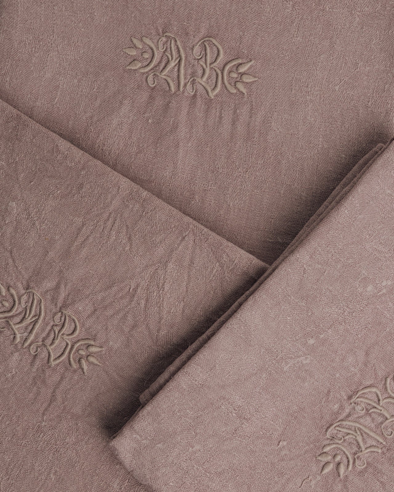 Chaque pièce est ornée du monogramme brodé “AB”, signature textile du début du XXᵉ siècle.