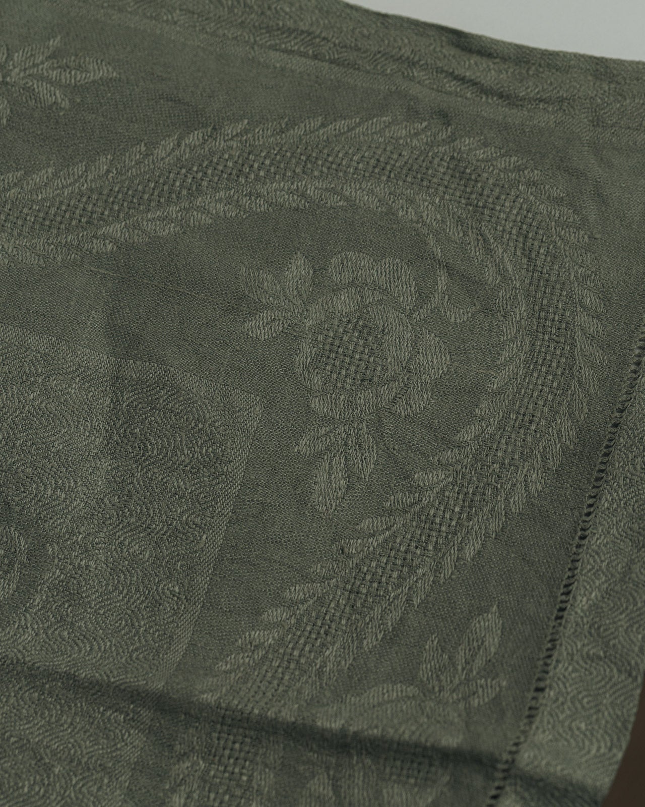 Lot de quatre serviettes en lin ancien, issues du linge de trousseau français et teintes à la main.