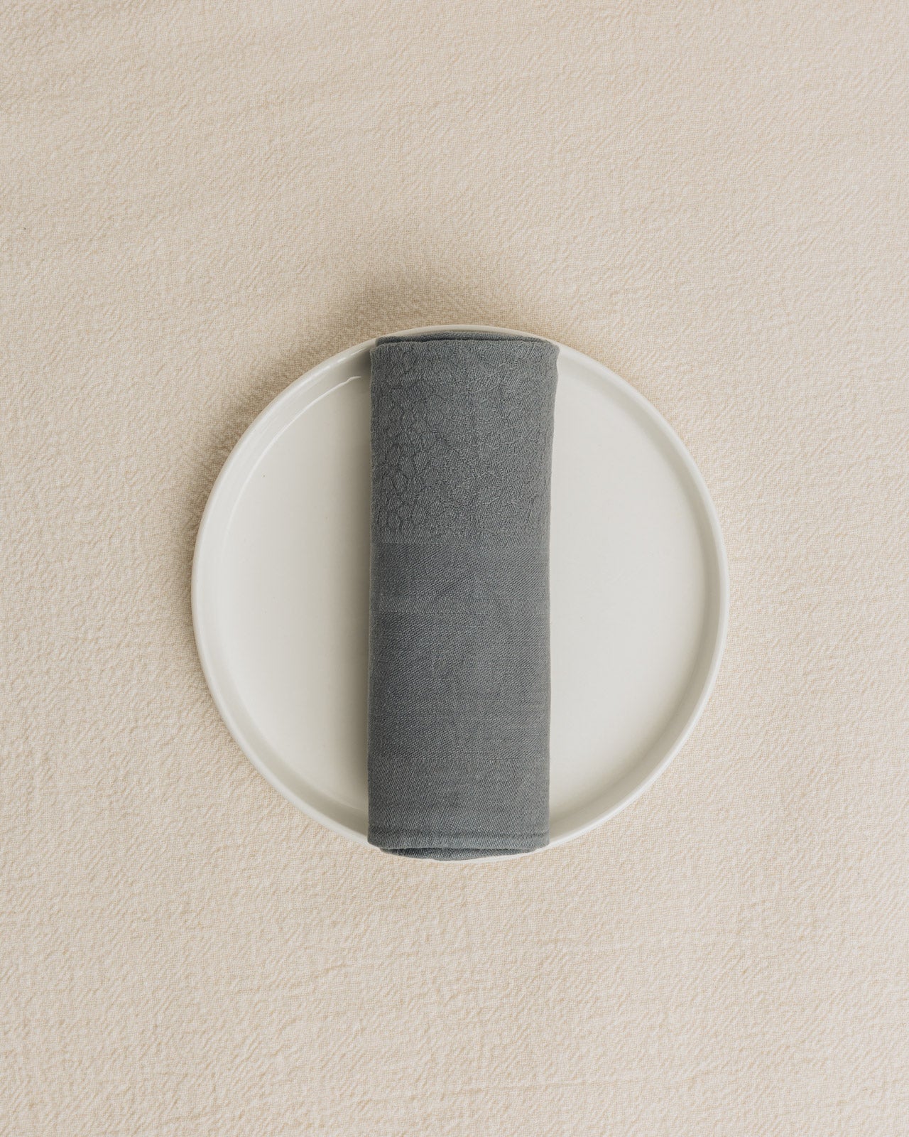Lot de six serviettes en lin ancien damassé, issues du linge de trousseau français et teintes à la main.