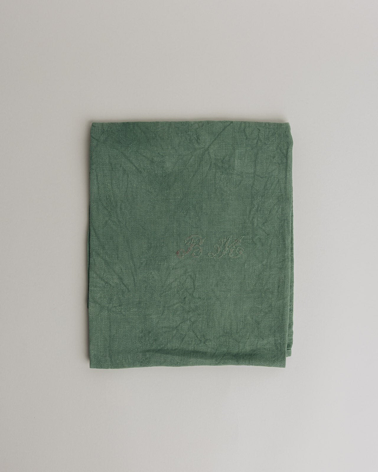 Lot de sept serviettes en lin ancien, issues du linge de trousseau français et teintes à la main.