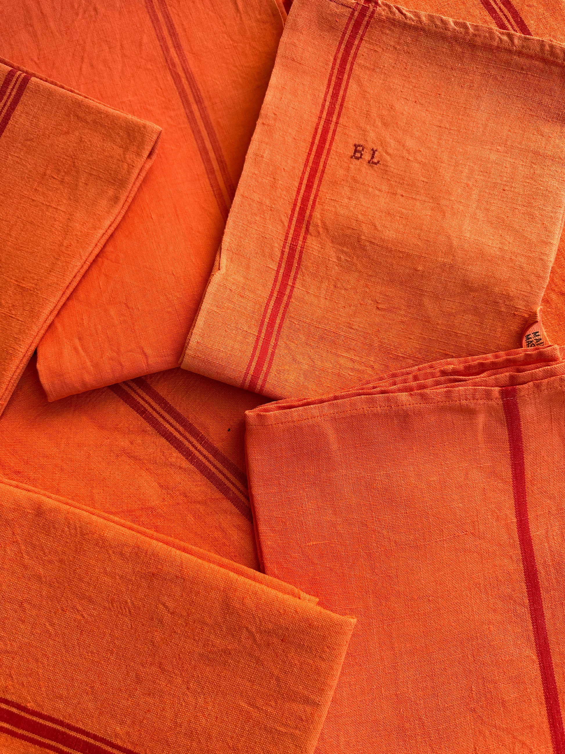 Chinés avec soin, teints et restaurés de manière artisanale dans notre atelier situé à Lyon, nos torchons sont méticuleusement nettoyés, réparés et remis en état pour garantir leur qualité optimale. Chaque exemplaire est unique ou fait partie d'une petite série, portant en lui l'histoire et le charme du passé.