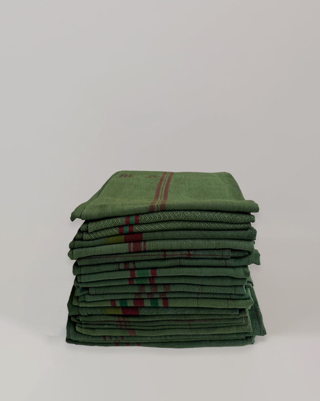 Chinés avec soin, teints et restaurés de manière artisanale dans notre atelier situé à Lyon, nos torchons sont méticuleusement nettoyés, réparés et remis en état pour garantir leur qualité optimale. Chaque exemplaire est unique ou fait partie d'une petite série, portant en lui l'histoire et le charme du passé.
